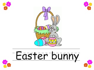 1. Spring ( I like spring ) 2. Easter ( I like Easter ) 3. Easter bunny ( I see Easter bunny ) 4. Easter eggs ( I see Easter eggs) 5. Easter chocolate ( I like Easter chocolate ) 6. Rice 米饭🍚 Dumpling 饺子🥟 Soup 汤🥣 7. Don't play with food 8. a cake , a candle , a balloon ,a party hat
