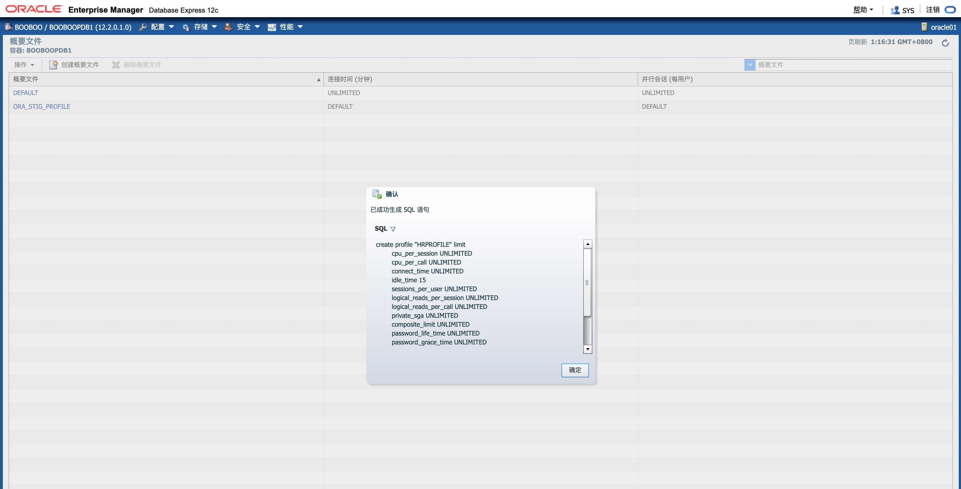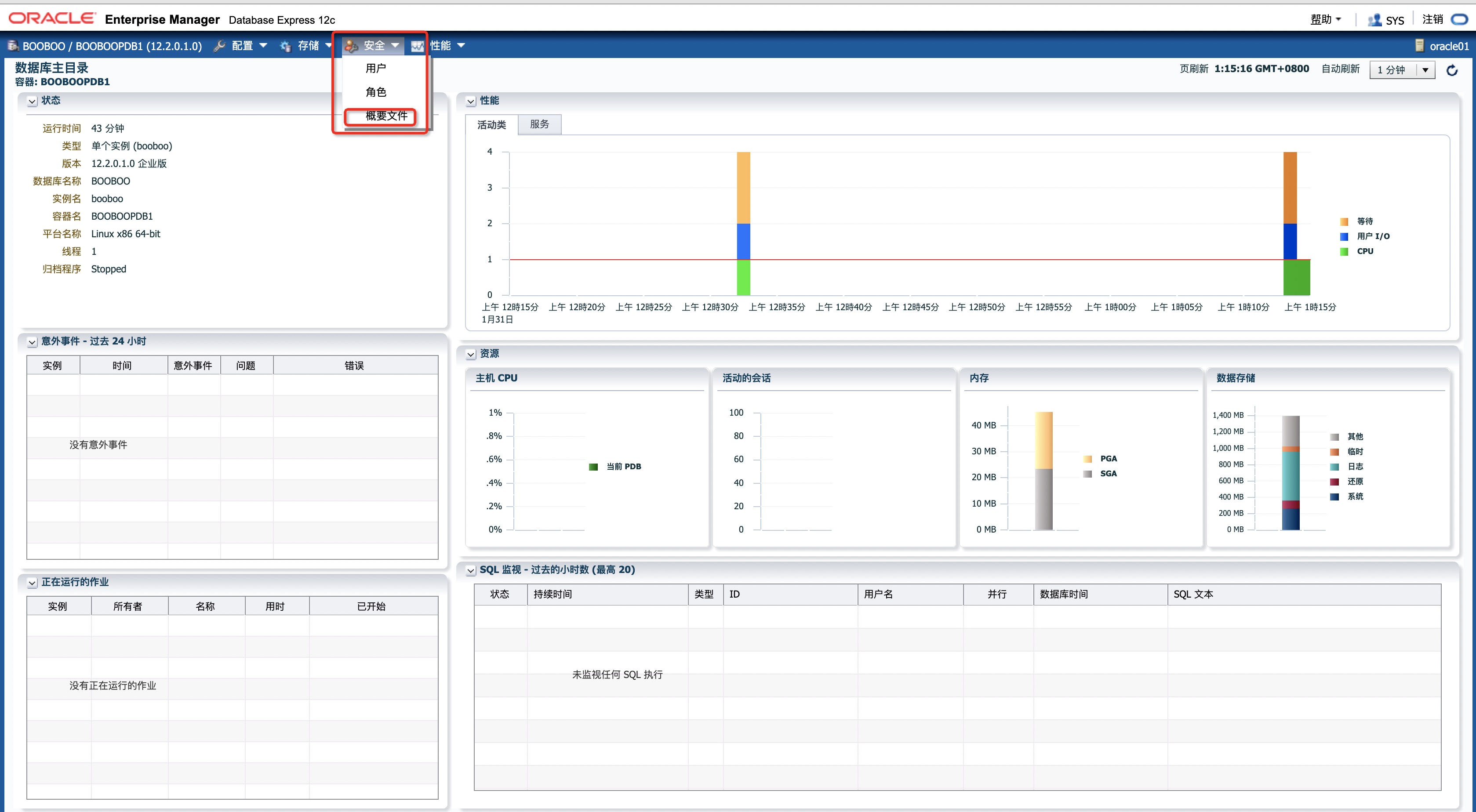 访问 Enterprise Manager Database Express,使用SYSDBA用户身份登录,然后执行以下步骤: