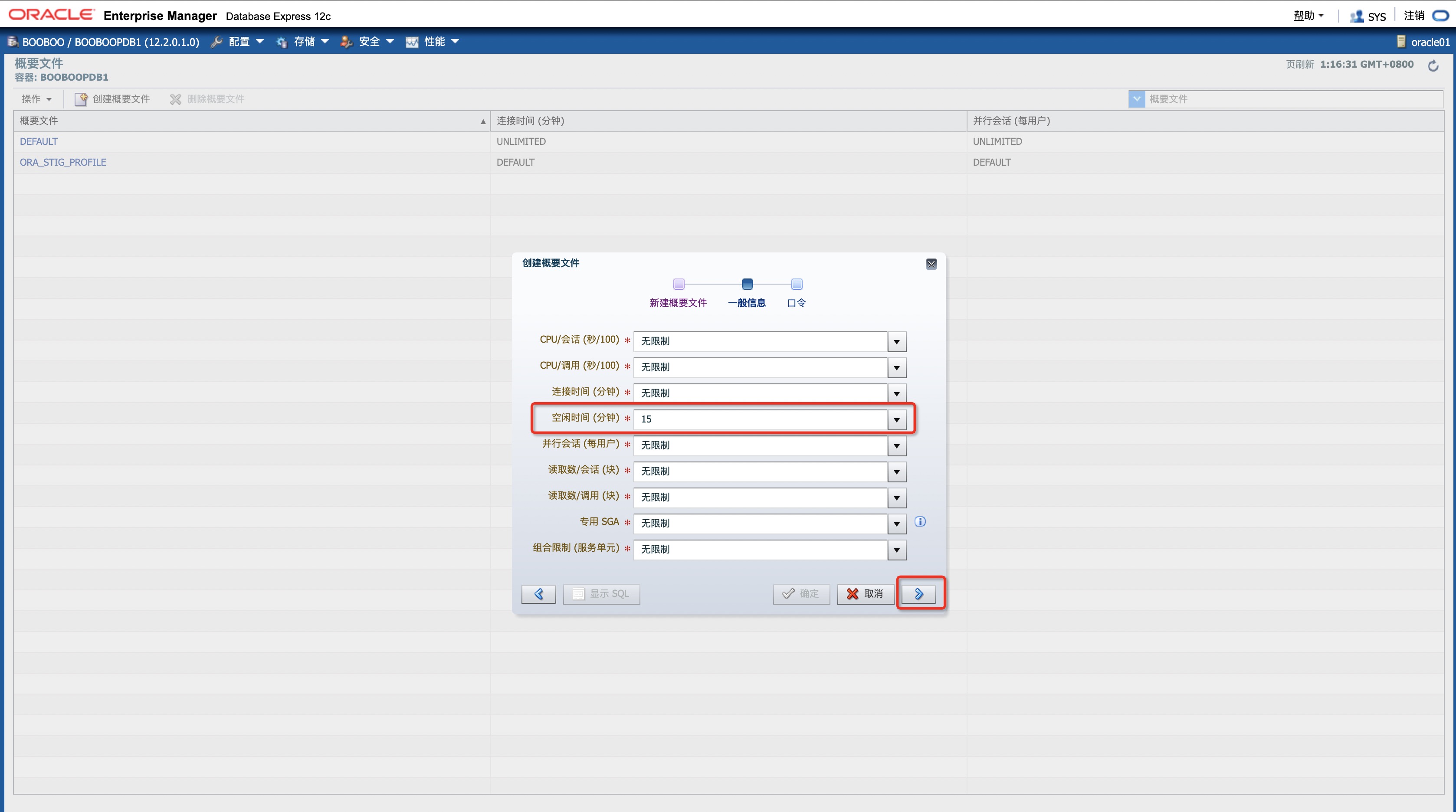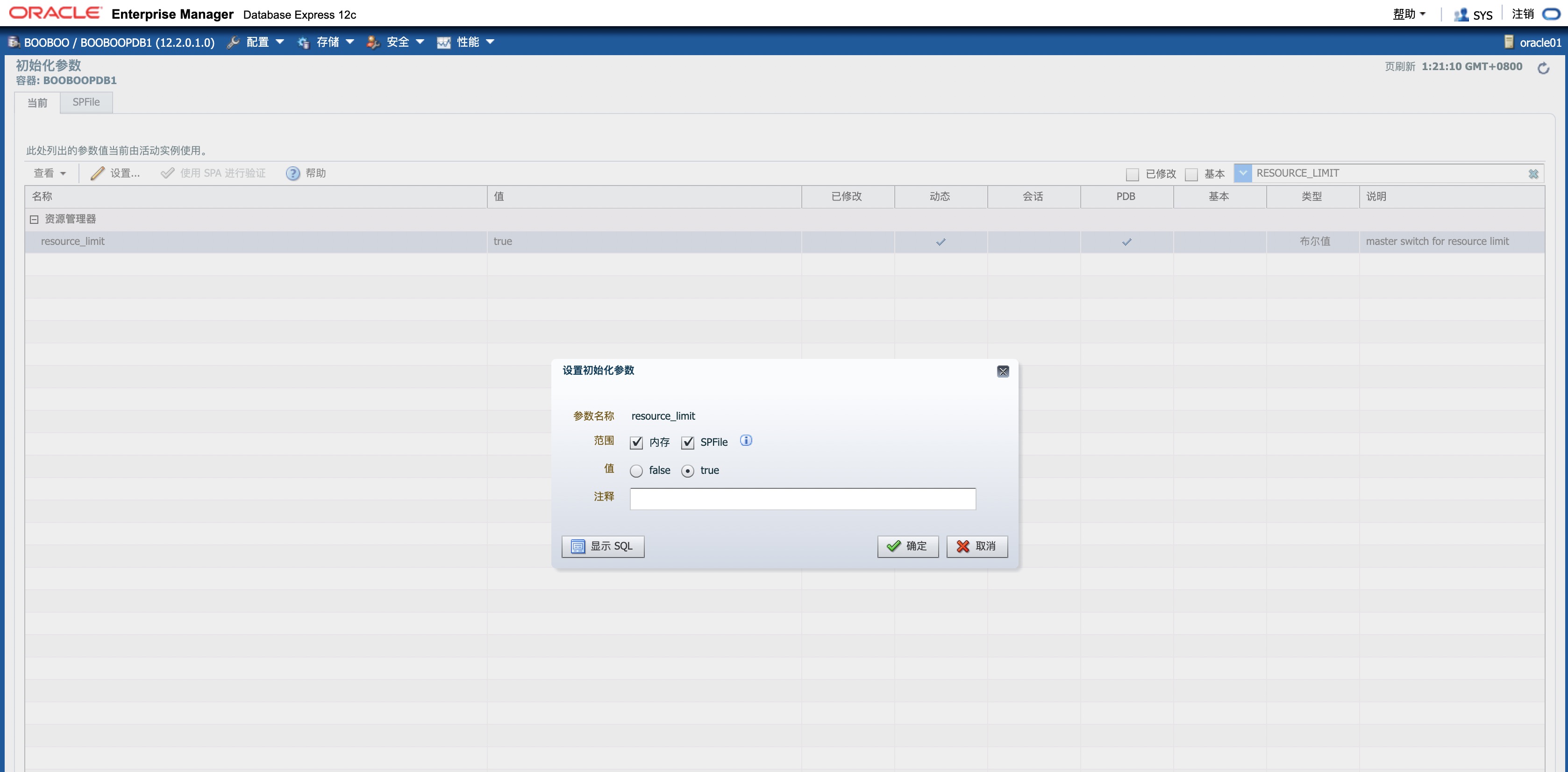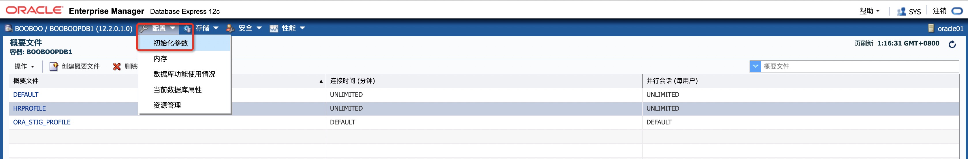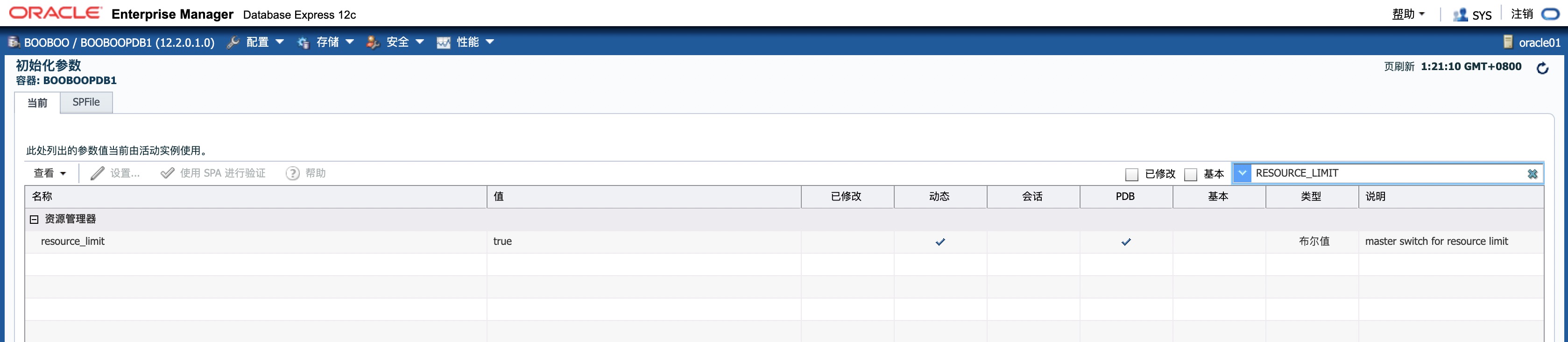 2. RESOURCE_LIMIT 初始化参数设置为 TRUE ,以便执行配置文件限制。