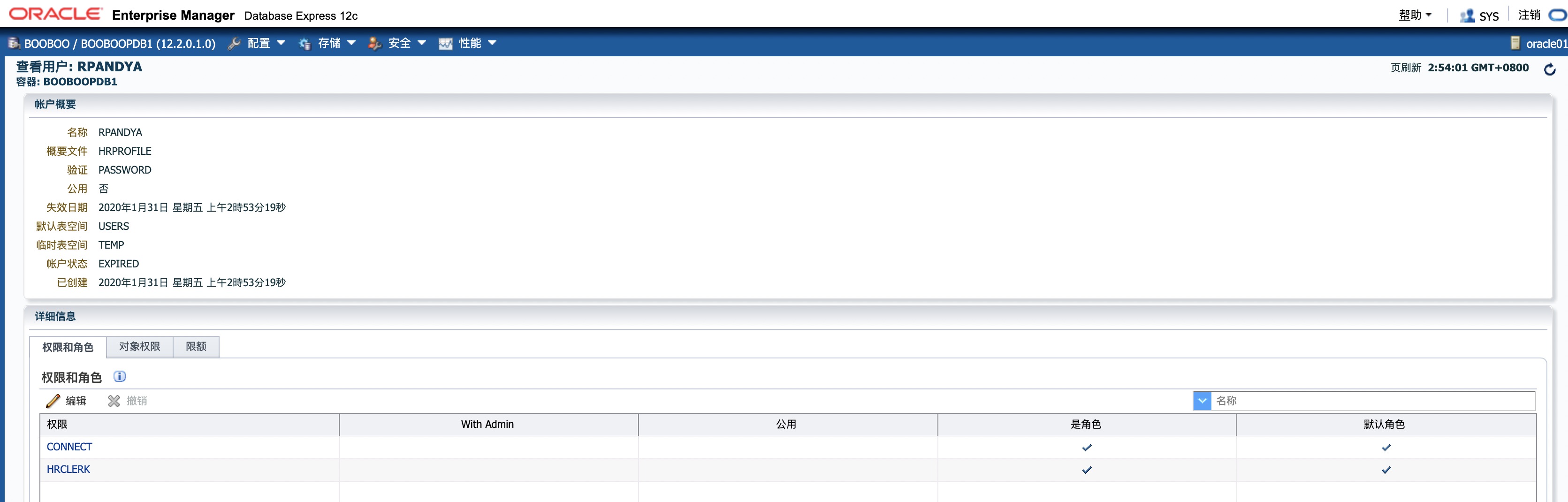 1. 在SQL * Plus 中测试新用户,使用 RPANDYA 用户连接到数据库,使用oracle_4U作为新密码。验证概要文件配置中的空闲时间15分钟的含义。