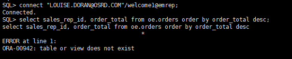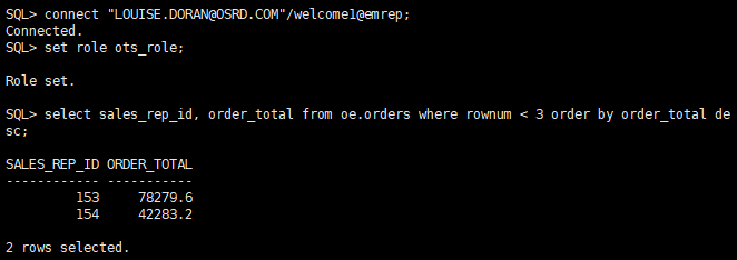 select sales_rep_id, order_total from oe.orders where rownum < 3 order by order_total desc;