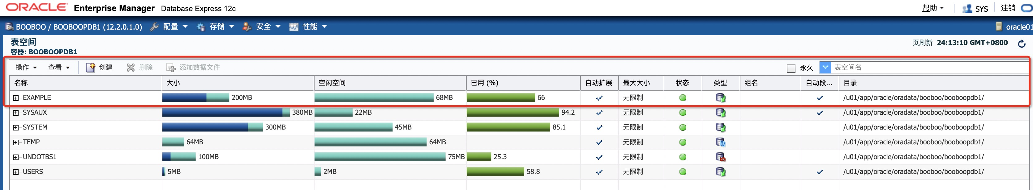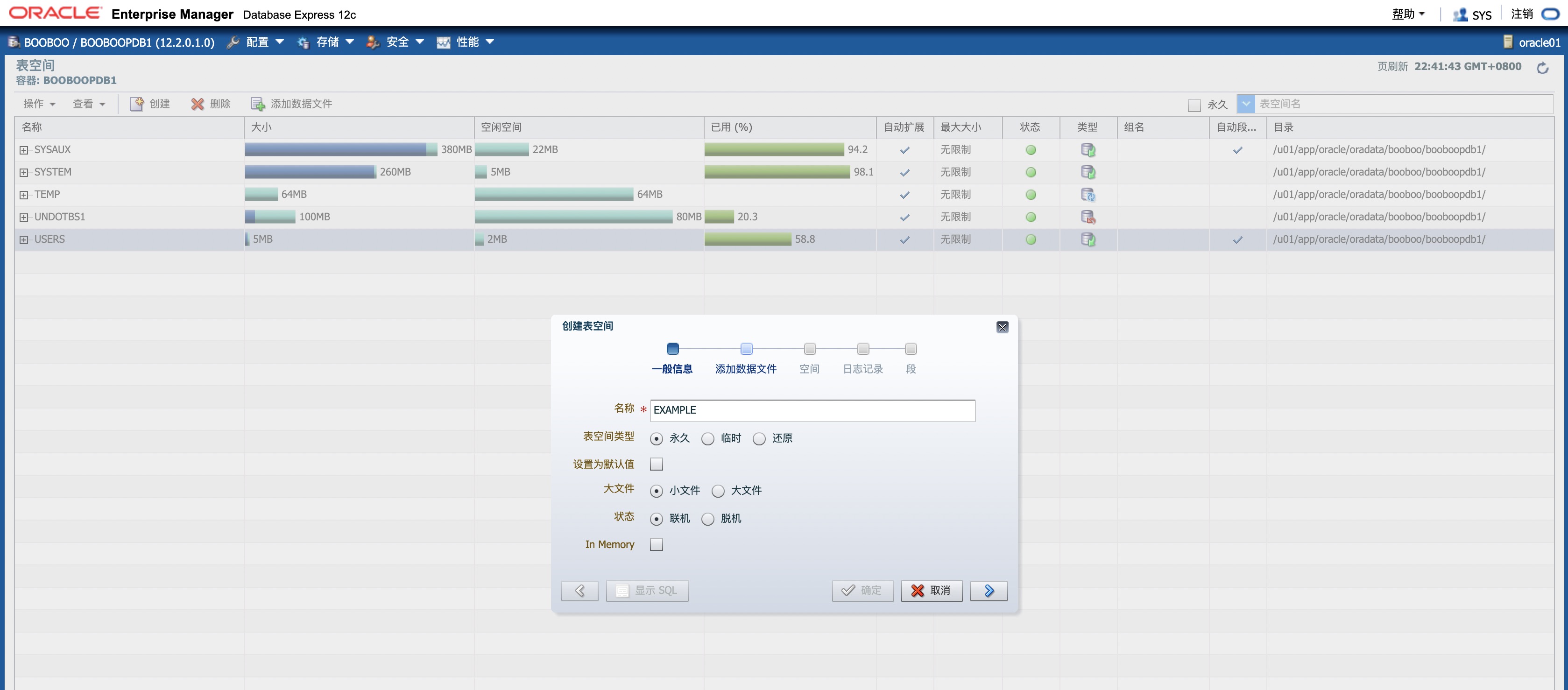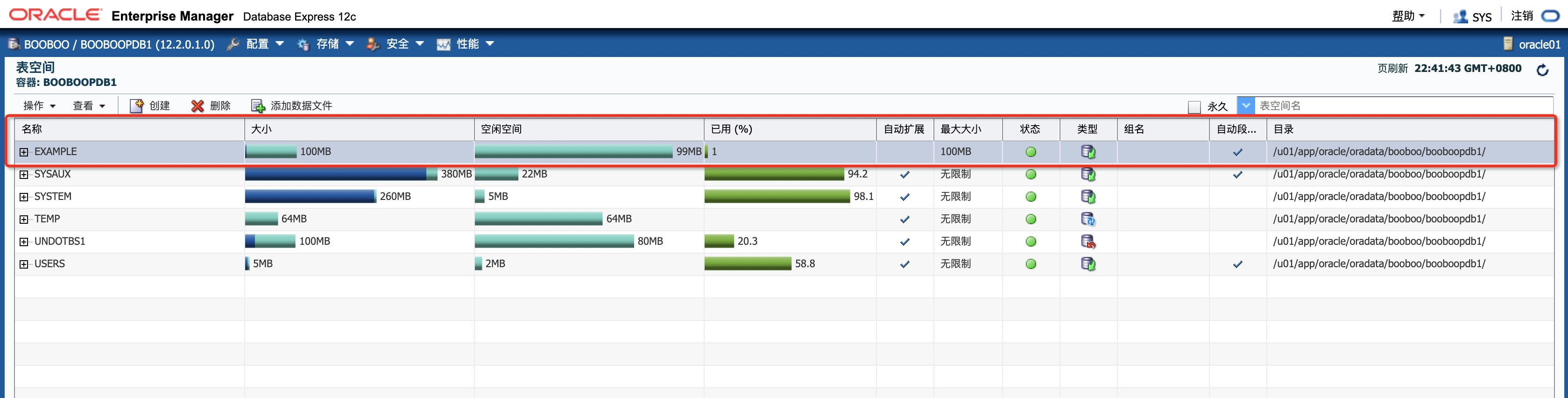 2228224使用EM,查看关于EXAMPLE表空间的信息,并回答给出的问题。