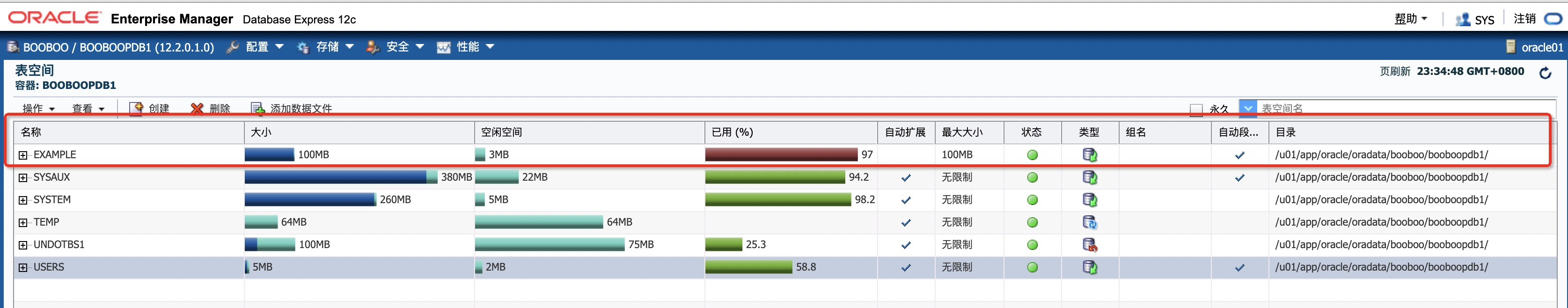 问题1:EXAMPLE表空间几乎满了。在不采取任何操作的情况下,表空间的大小是否可以增加