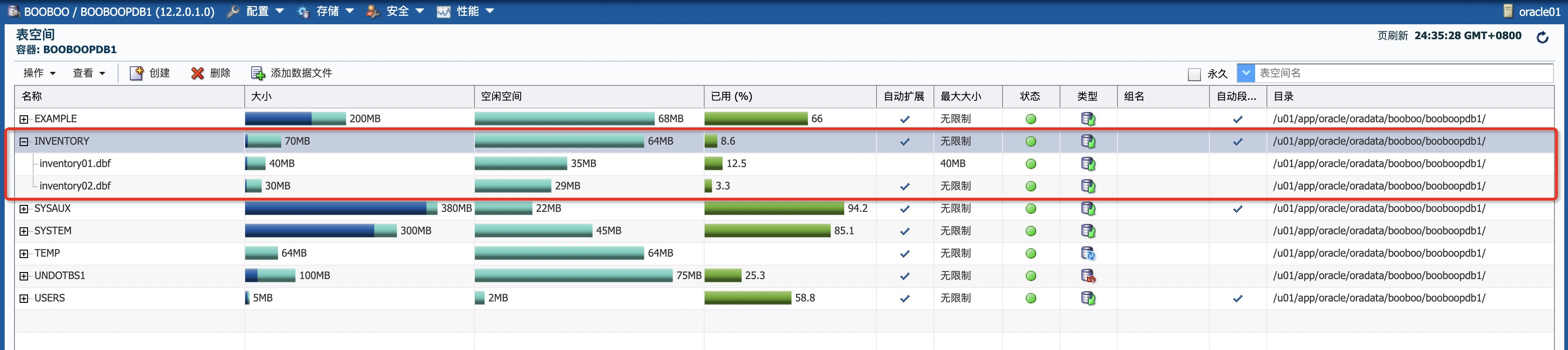 ALTER TABLESPACE "INVENTORY" ADD DATAFILE '/u01/app/oracle/oradata/booboo/booboopdb1/inventory02.dbf' SIZE 30M AUTOEXTEND ON NEXT 100M;