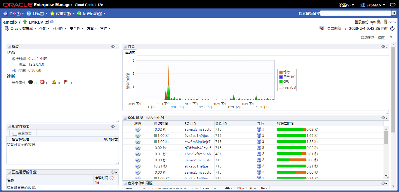 /u01/app/oracle/diag/rdbms/emcdb/emcdb/trace目录,查看警报日志的结尾,以验证跟踪文件的创建和文件的名称。cd /u01/app/oracle/diag/rdbms/emcdb/emcdb/trace