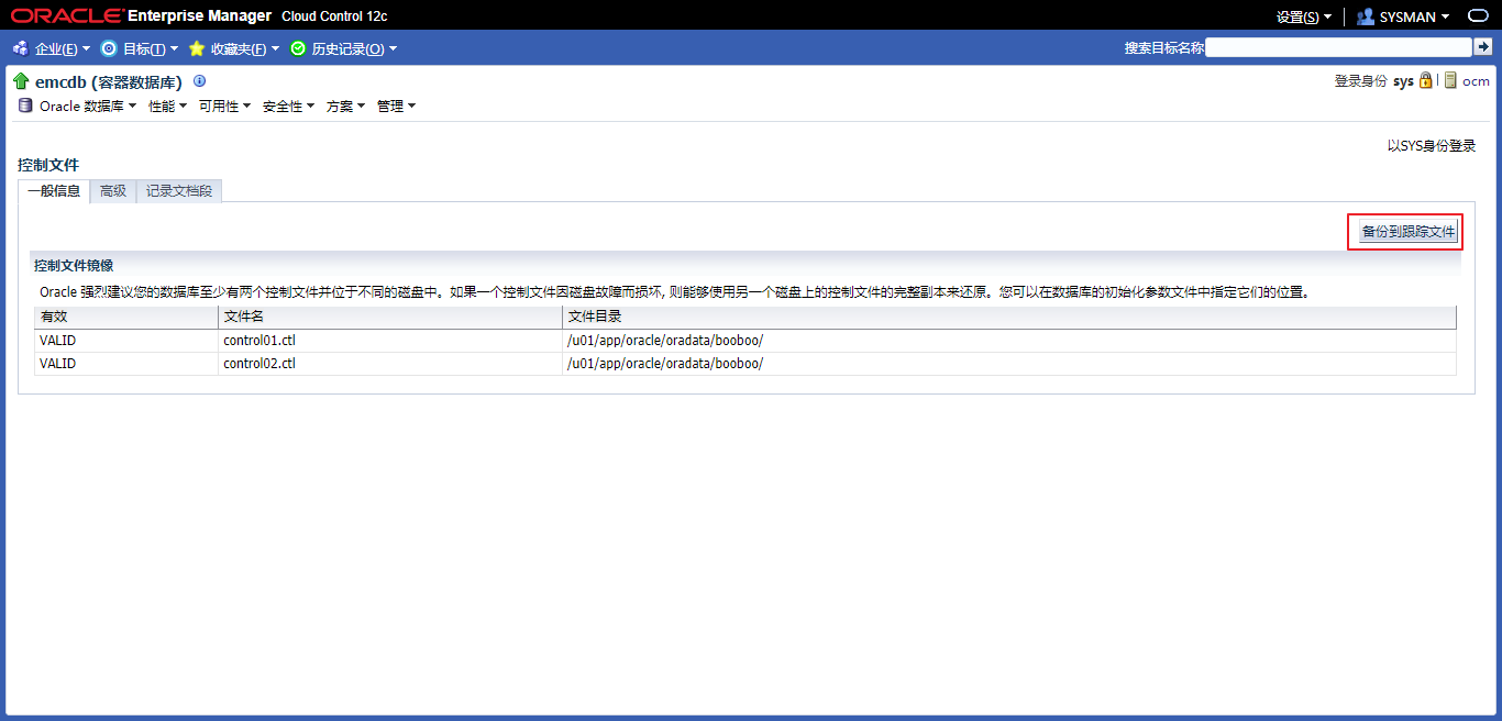 Backup controlfile written to trace file /u01/app/oracle/diag/rdbms/emcdb/emcdb/trace/emcdb_ora_32205.trc