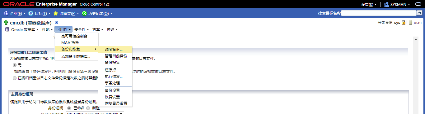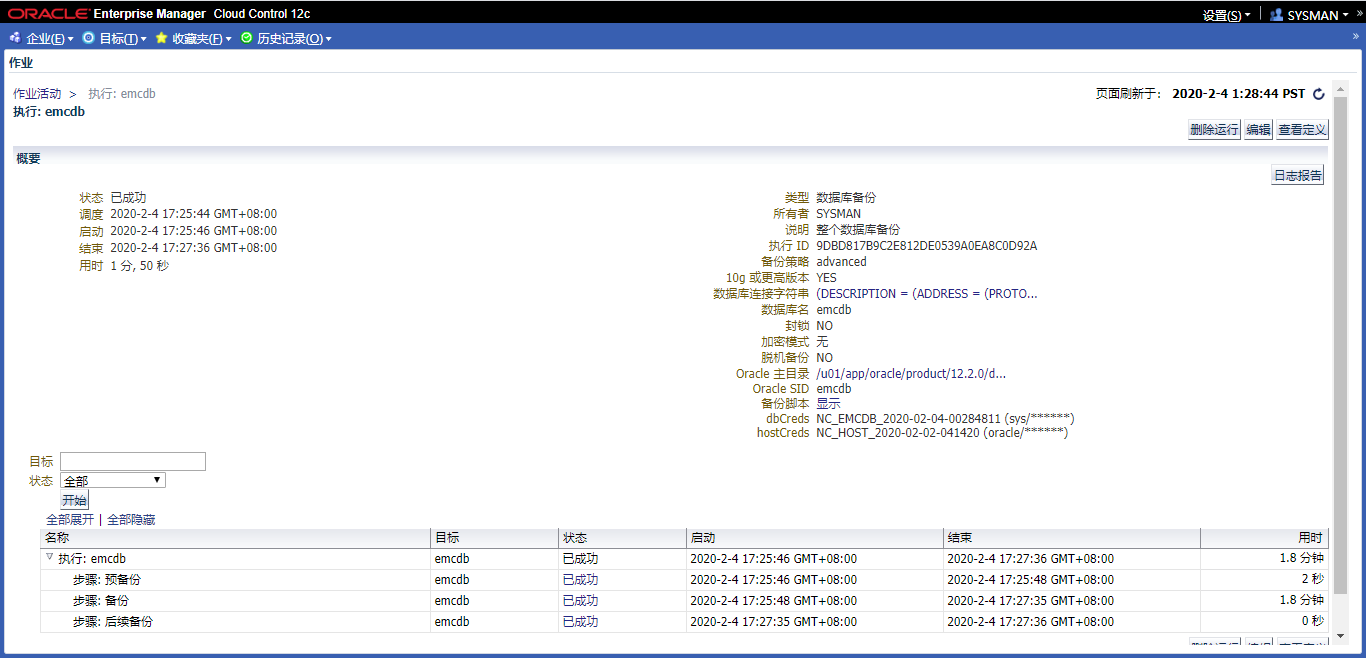Enterprise Manager Cloud Control中关于备份的操作个人理解为是RMAN的图形化界面。