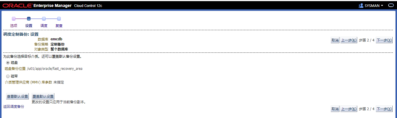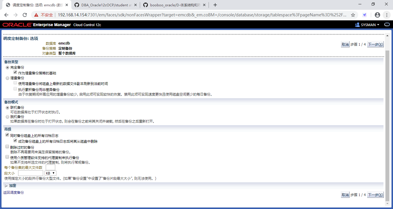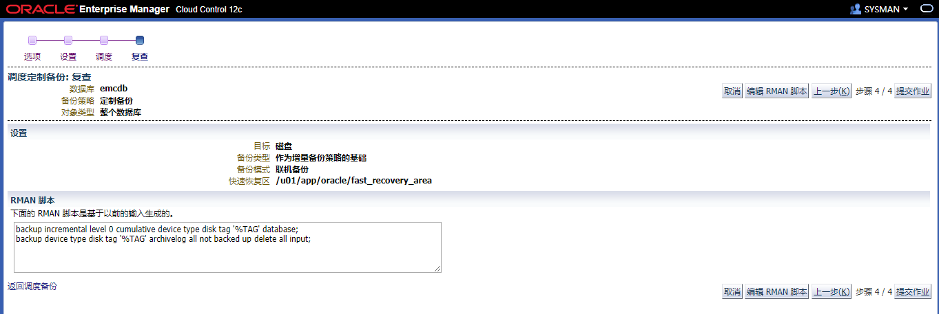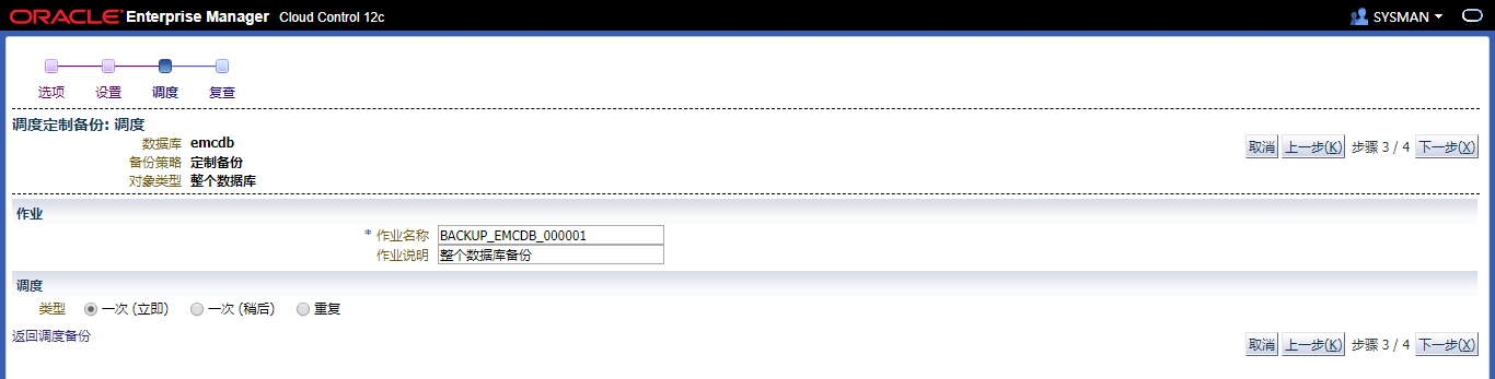 在Enterprise Manager Cloud Control中,通过调度备份进行数据库在线热备之全库备份