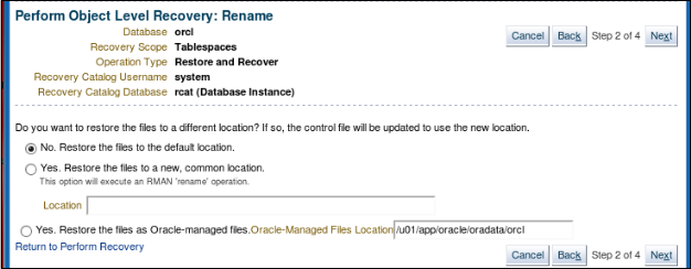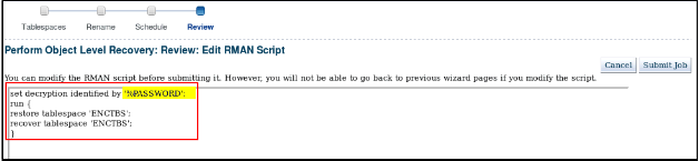 # 7.在“执行对象级别恢复:计划”页面上,输入RECOVERY_ENC作为作业。 |