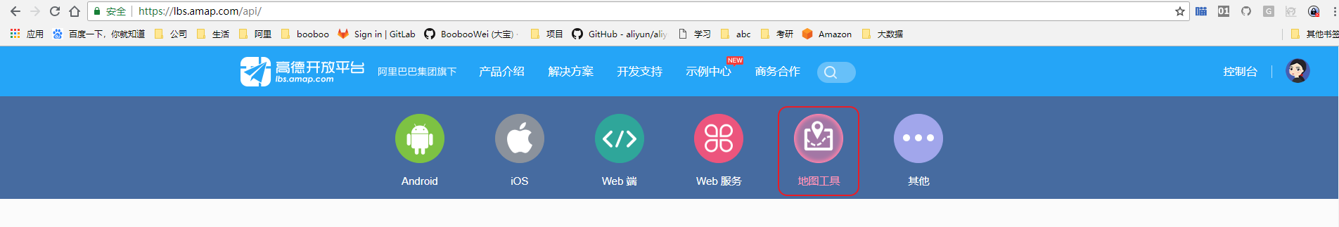 登陆https://lbs.amap.com/api/ 选择 “坐标拾取器”