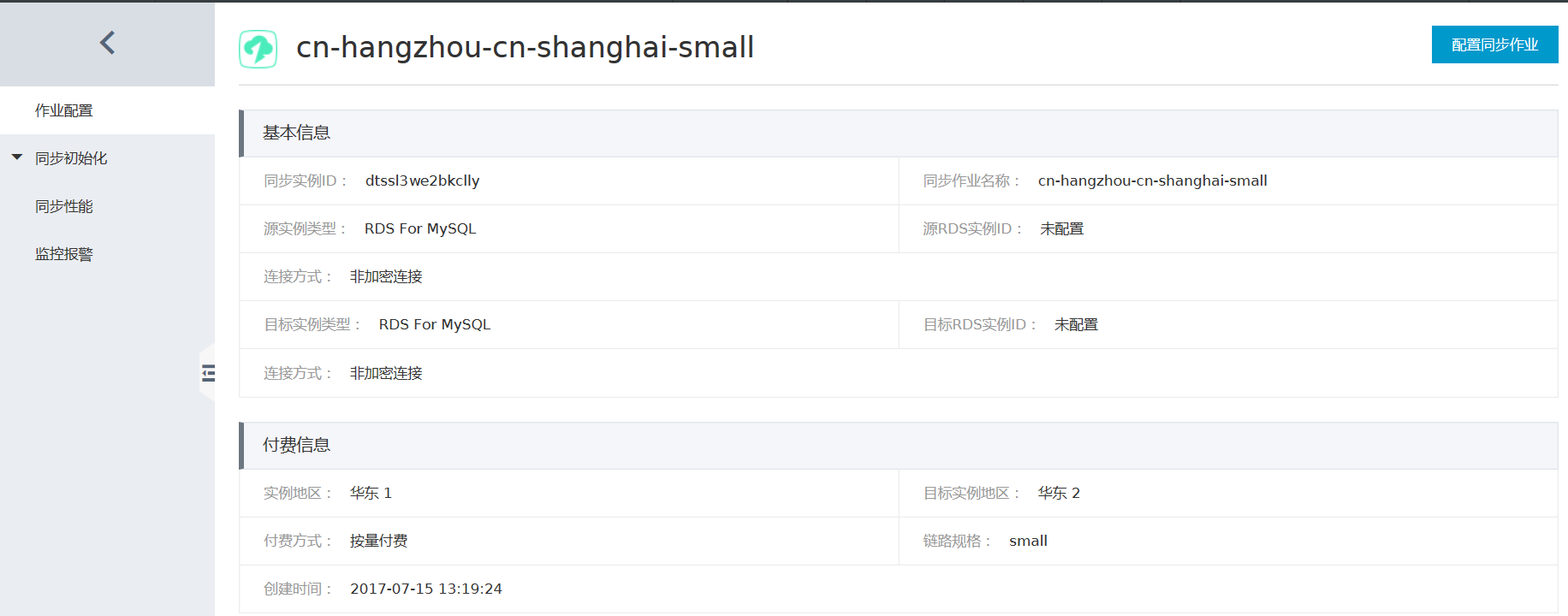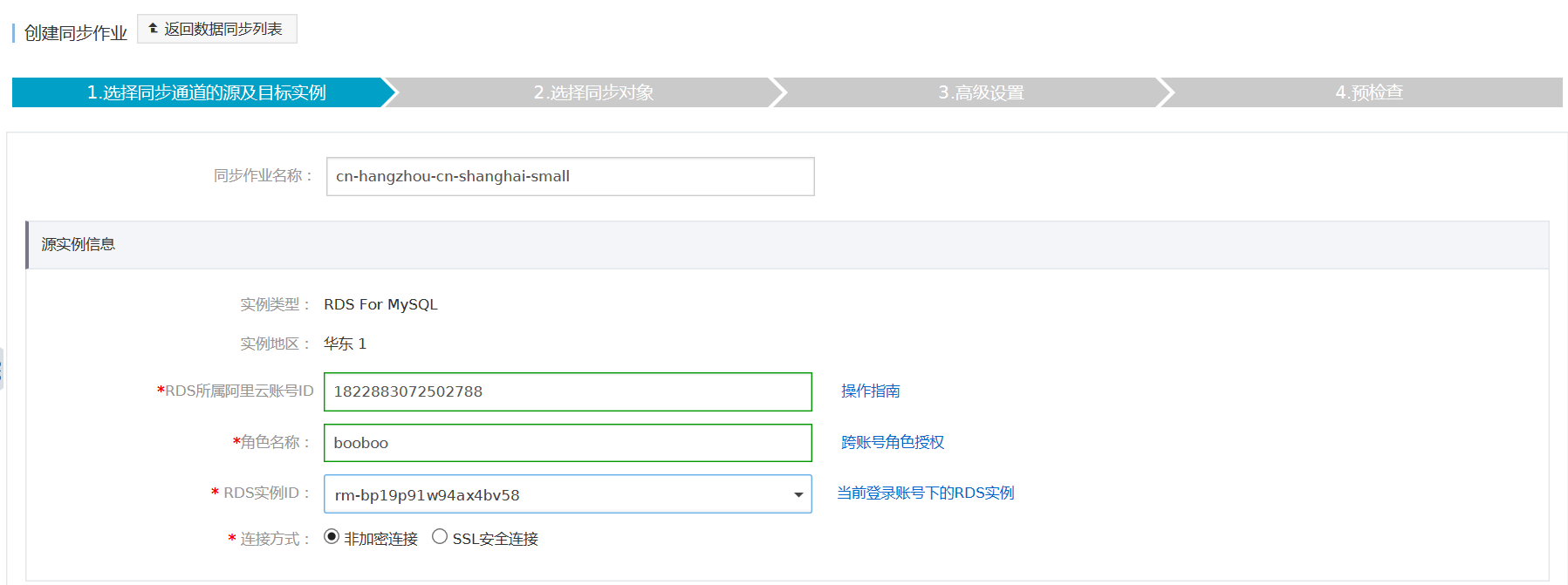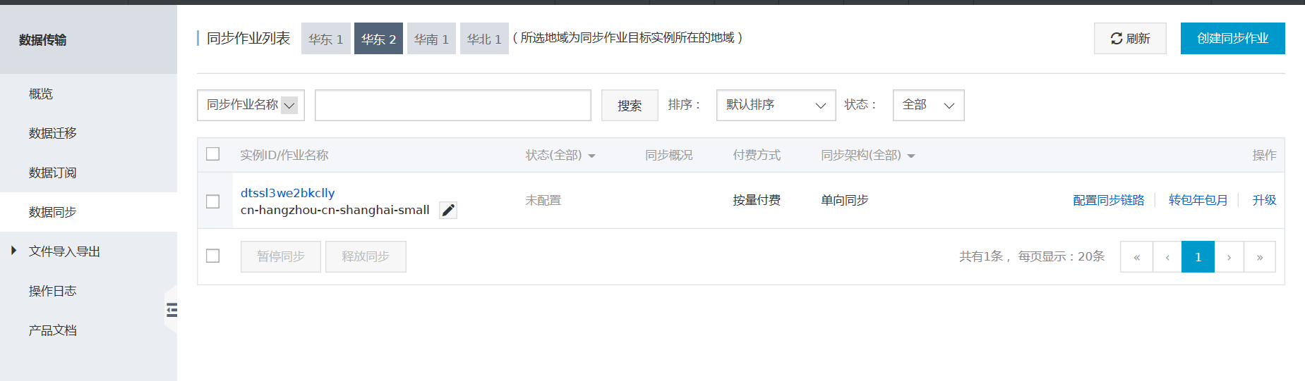 | 实例地区 | 华东1 | 源地域为同步链路源实例所在地域。 |