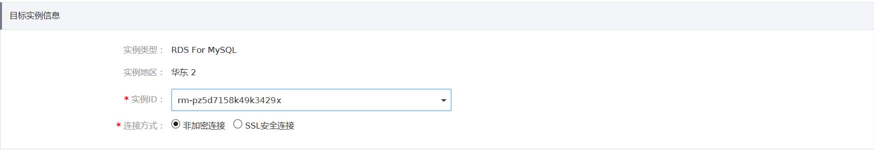 | 实例地区 | 华东2 | 目标实例所在地域 |