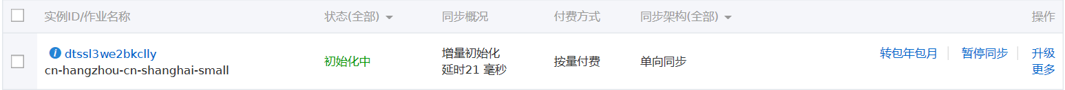 | 第四步 | 通过DTS实现公共云与金融云间RDS实时同步 | 可用 | 全量数据初始化 | |