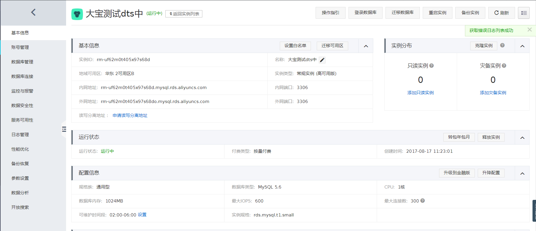 mysql>select * from t1 limit 2; +--------------+-----------------+-----------------------+---------------+ | id           | uname           | ucreatetime           | age           | +--------------+-----------------+-----------------------+---------------+ |            1 | 用户1           | 2010-01-01 00:00:00   |            20 | |            2 | 用户2           | 2010-01-01 00:00:00   |            20 | +--------------+-----------------+-----------------------+---------------+ 共返回 2 行记录,花费 1 ms. mysql>show variables like 'gtid%'; +-------------------------+-----------------+ | Variable_name           | Value           | +-------------------------+-----------------+ | gtid_executed           |                 | | gtid_mode               | ON              | | gtid_next               | AUTOMATIC       | | gtid_owned              |                 | | gtid_purged             |                 | +-------------------------+-----------------+ 共返回 5 行记录,花费 1 ms.