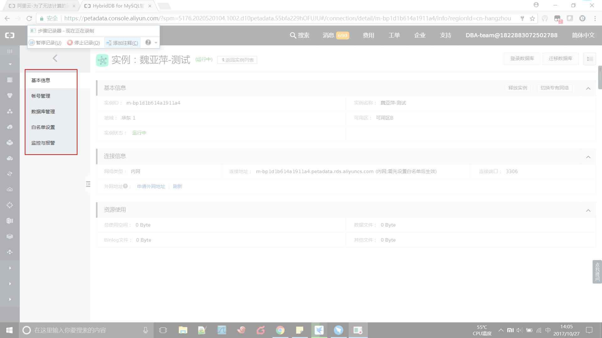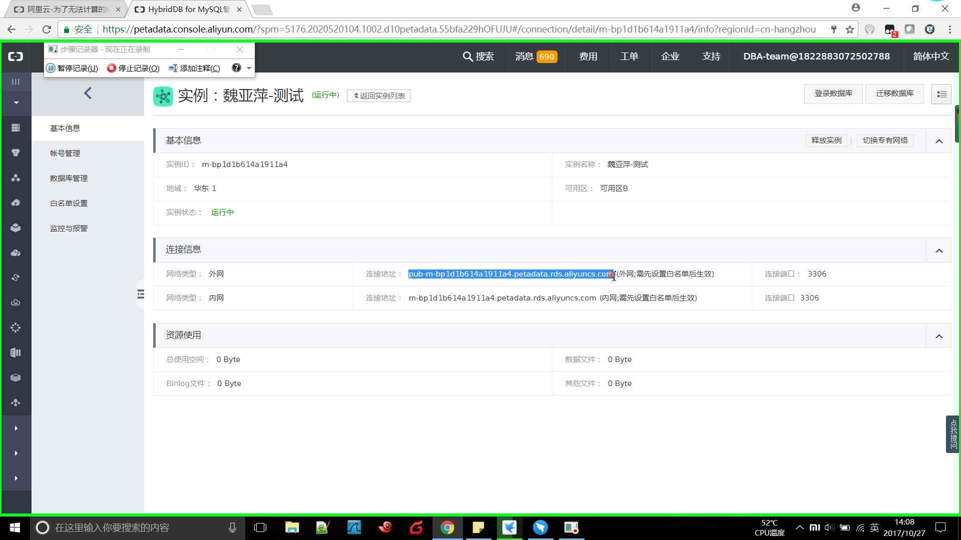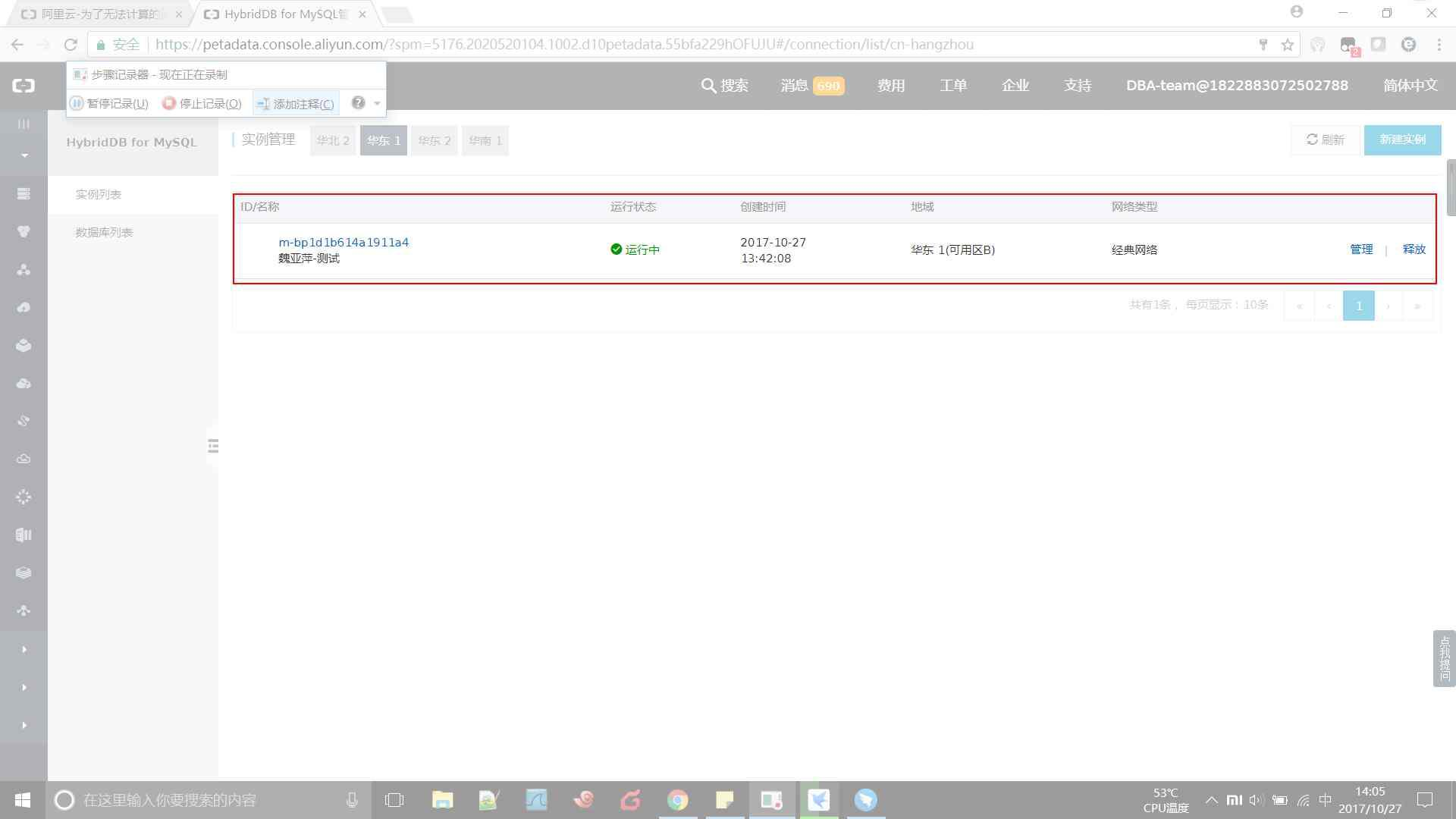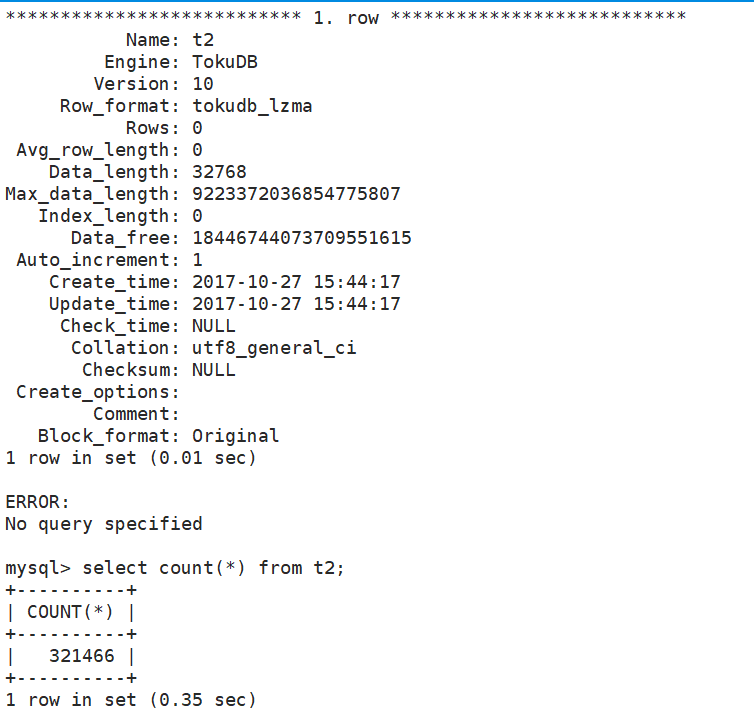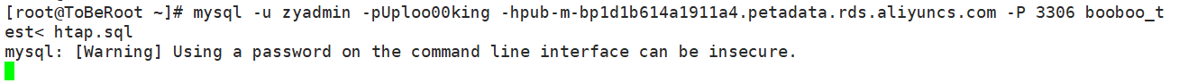 [root@ToBeRoot ~]# bash foo.sh [root@ToBeRoot ~]# mysql -u zyadmin -pUploo00king -hpub-m-bp1d1b614a1911a4.petadata.rds.aliyuncs.com -P 3306 booboo_test< htap.sql mysql: [Warning] Using a password on the command line interface can be insecure. mysql> select count(*) from t2 where hiredate between unix_timestamp("2017-10-27 15:50:04") and unix_timestamp("2017-10-27 15:59:00"); +----------+ | COUNT(*) | +----------+ | 537 | +----------+ 1 row in set (0.14 sec)