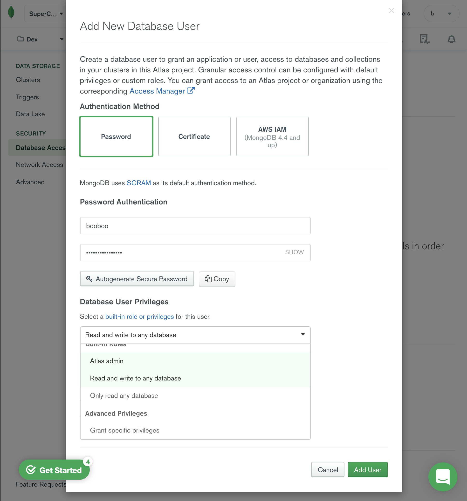 user@B01202010002-33 ~ % mongo "mongodb+srv://xxx/admin" --username booboo